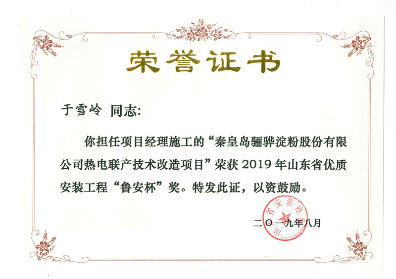 Certificate of honor